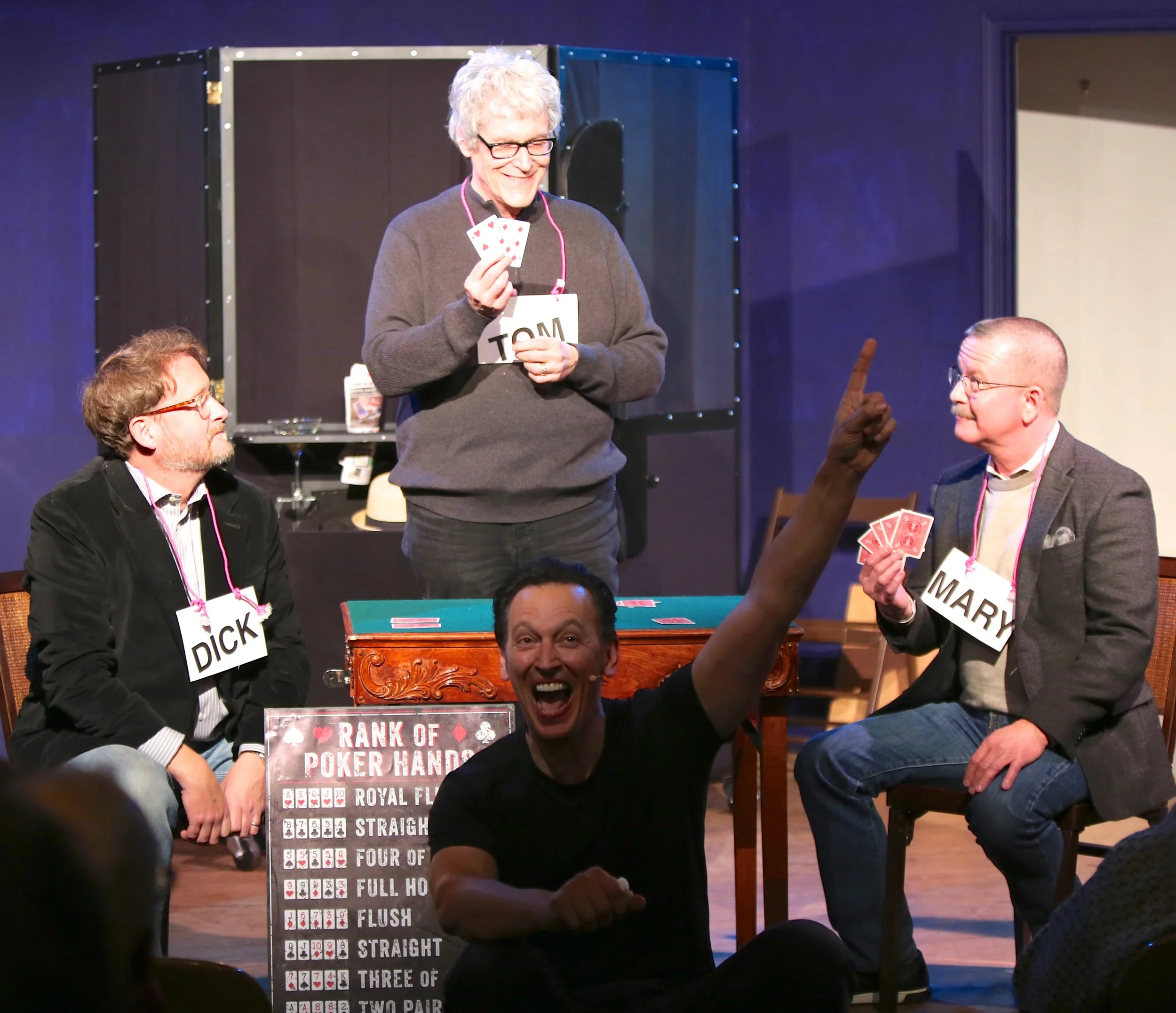 “Valentine’s lightning-fast prestidigitation defies description, proving that age-old saying ‘the hand is quicker than the eye.’ Years of honing his sleight-of-hand skills are on display in this exciting and compelling show that deftly combines comedy with illusions and card tricks as well as injecting personal storytelling. Valentine is a consummate performer who knows how to hold the rapt attention of the audience in the palms of his dextrous hands.