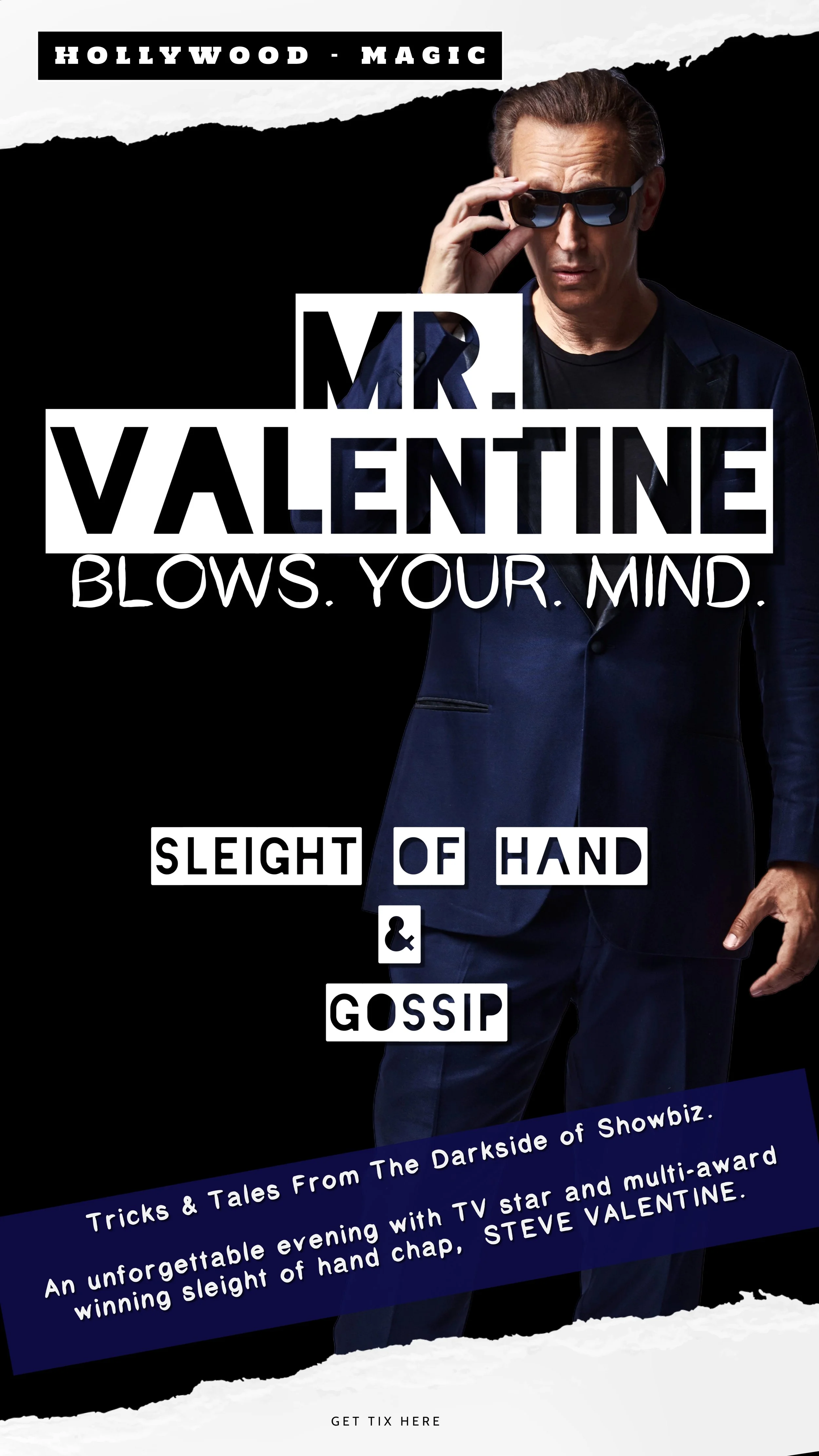 Born into British show business, world-famous actor and entertainer Steve Valentine has spent a lifetime mastering the art of performance. From small-town UK stages to Hollywood spotlights, Steve’s journey has spanned decades, continents, and genres—uniting theatre, comedy, and world-class magic in one extraordinary career.